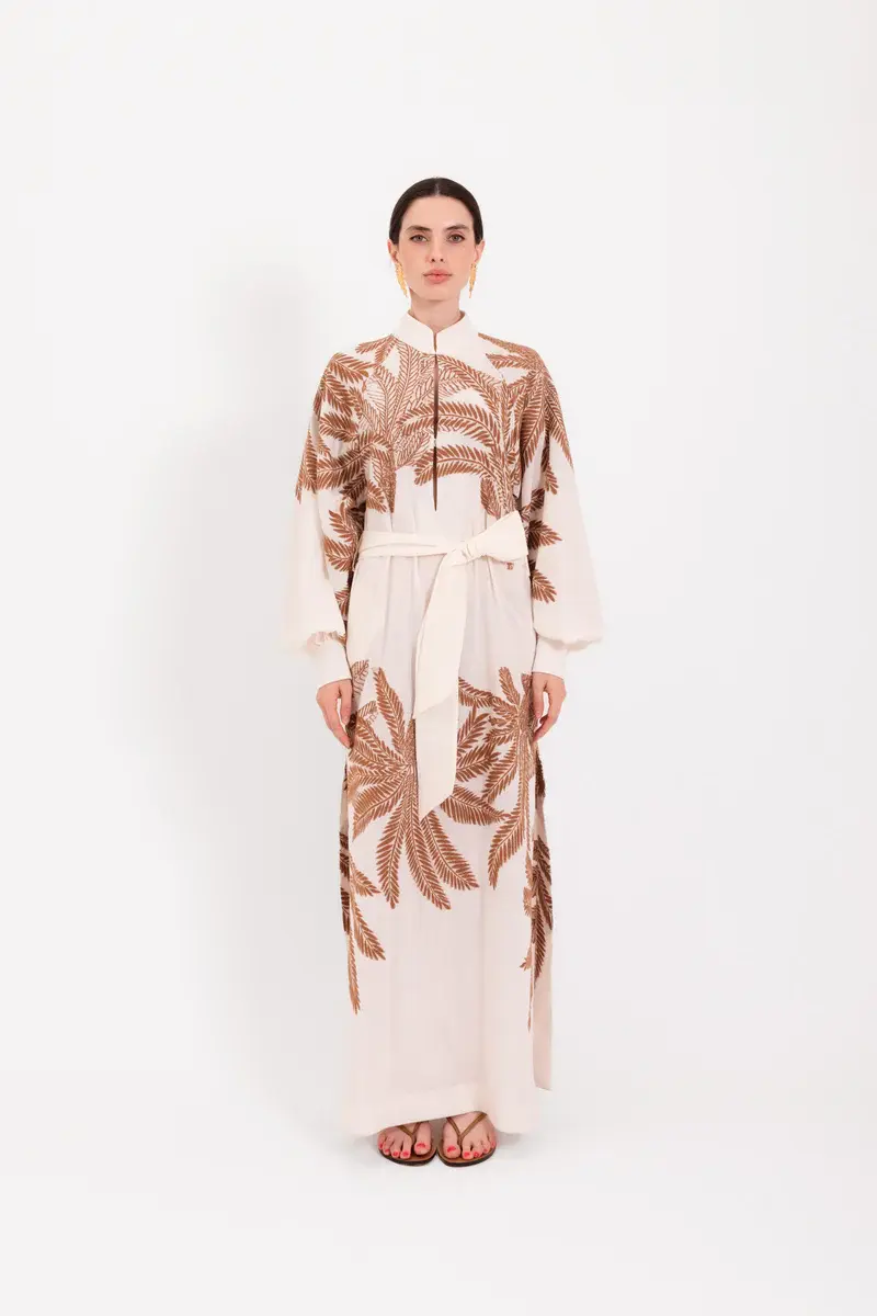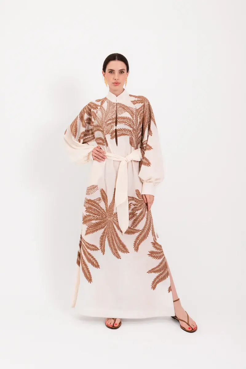 Lavi Couture – Lange jurk met palmprint | Lichtbeige