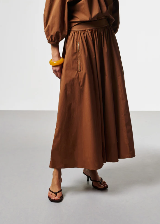 De AAIKO Rixt rok in bruin is een elegante en tijdloze dames rok die moeiteloos vrouwelijkheid en comfort combineert. De warme bruintint geeft een zachte, luxe uitstraling en laat zich prachtig combineren met zowel lichte als ton-sur-ton kleuren.