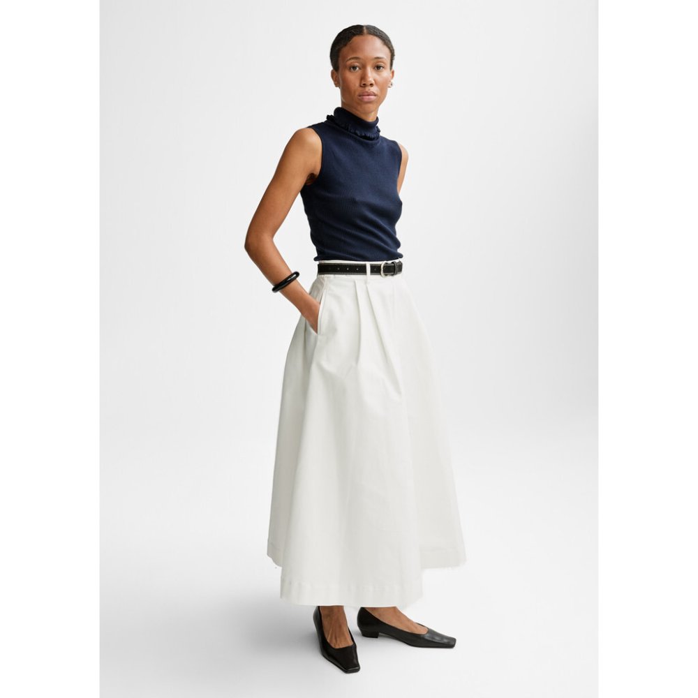 Anna katoenen rok is geweven in een knapperige en sculpturale kwaliteit.