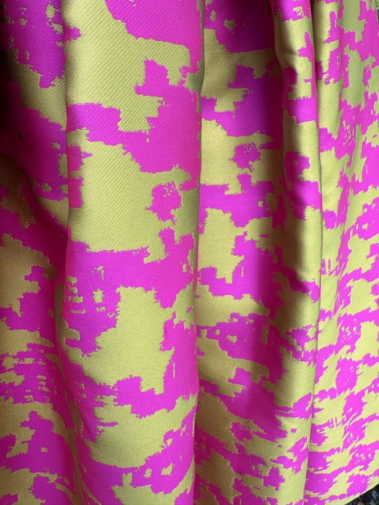 Damesrok van Lunatica Milano in geel en blauw. Dankzij de stolpplooien krijgt het model een vrouwelijke swing, terwijl het gebloemde all-over dessin het feestelijke totaalbeeld stijlvol in stijl brengt. De steekzakken aan de zijkant maken de look modieus compleet.