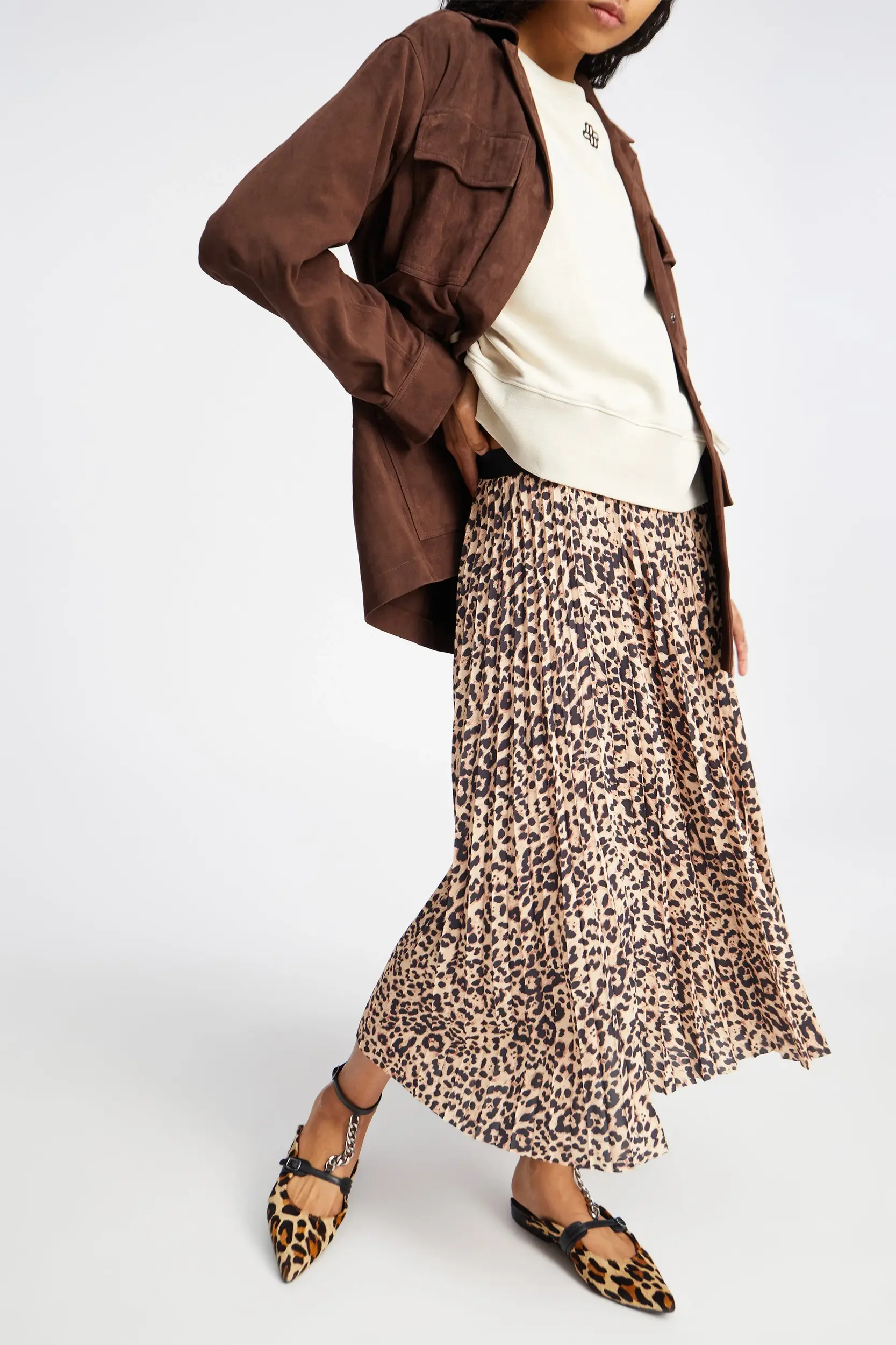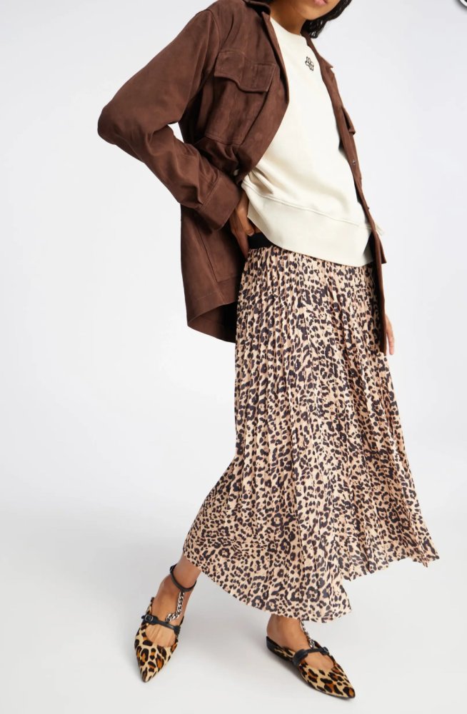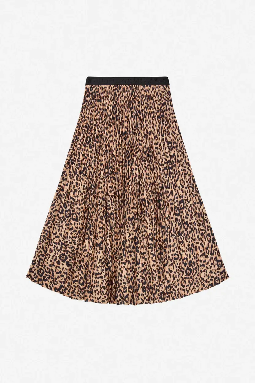 Een plooirok met een elegante luipaardprint en een elastische tailleband. De rok heeft een normale pasvorm.