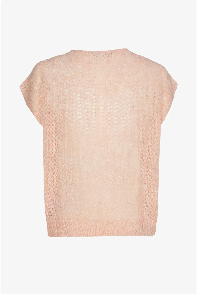 Deze losgebreide spencer van zachte alpacawol is subtiel transparant voor een speelse, relaxte look. Draag hem eenvoudig over een topje en geniet van het comfortabele draagcomfort. Perfect voor zomerse avonden en milde lentedagen.