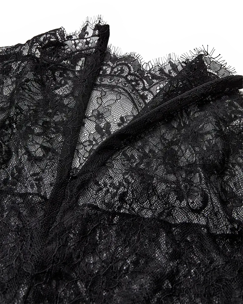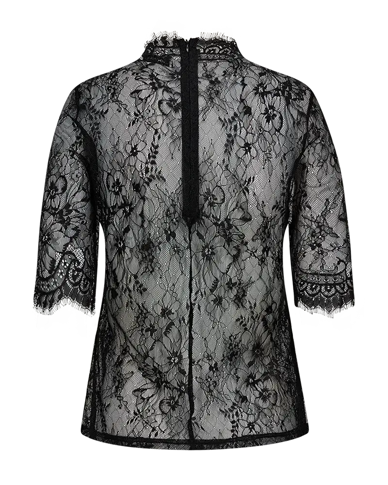 CMLEA-BLOUSE is een strak zittende blouse van een premium wimperskant met een hoge hals, verborgen ritssluiting aan de achterkant,
