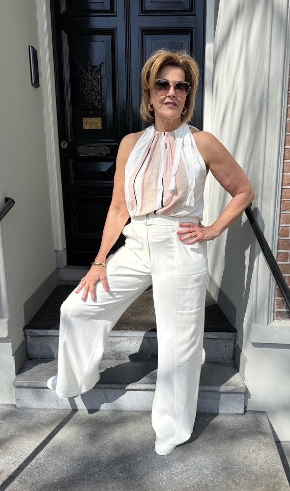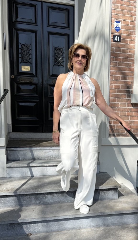 Je draagt deze top moeiteloos chic op een mooie pantalon, zoals hier gecombineerd, maar net zo stijlvol op een lichte jeans voor een meer casual look. Van lunch tot diner: dit is zo’n stuk dat altijd goed voelt.