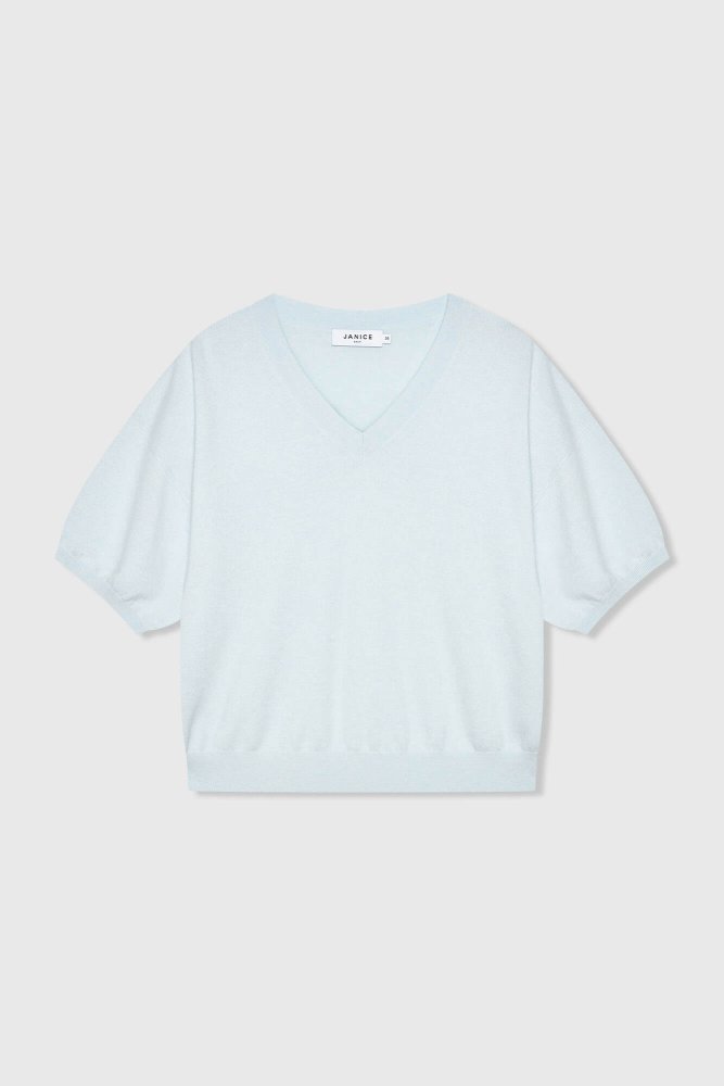 Janice Cashmere Dames Trui V-Hals Romeo Licht Blauw