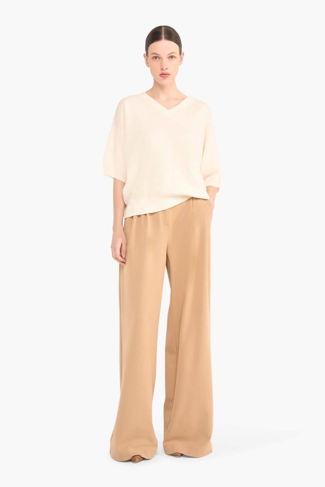 Combineer deze cashmere V-hals trui met een tijdloos silhouet en minimale details en je krijgt deze dames trui van JANICE. Ontworpen met een mooie v-hals, korte mouw en losse fit rond je middel, maar met een aangesloten boord aan de onderkant zodat de trui niet vol maakt. Het breisel is fijn en heeft een subtiel geborstelde finish voor een ultra-zacht gevoel.