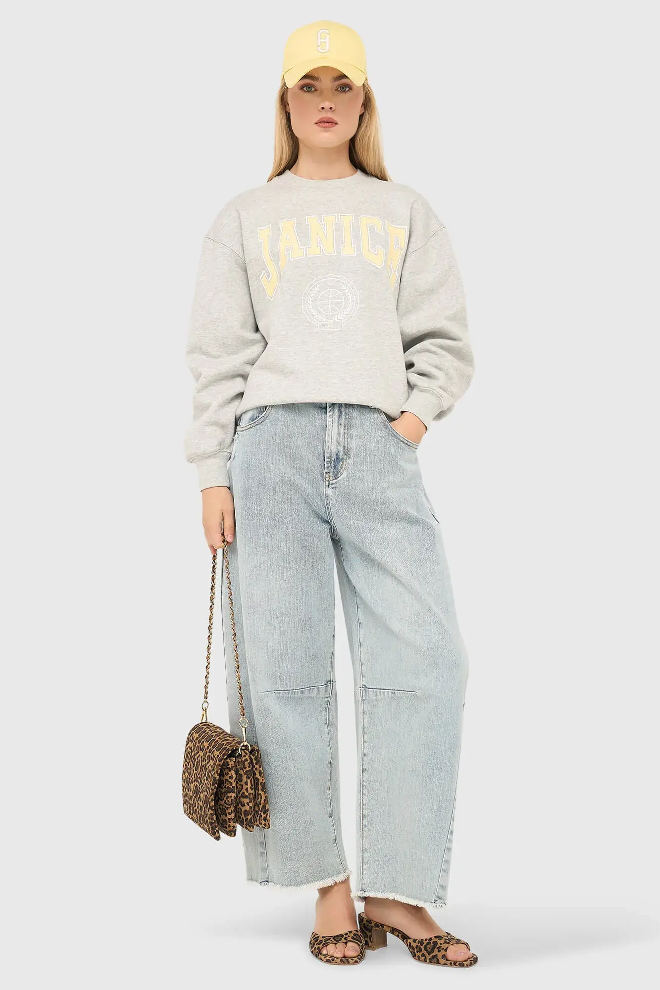 De grijze dames sweater katoen logo OWEN van JANICE is een eigentijdse dames trui die past binnen een moderne en luxe garderobe. Gemaakt van 80% katoen en 20% polyester heeft deze sweater een zachte, comfortabele structuur die prettig aanvoelt op de huid en tegelijkertijd duurzaam is. Dankzij de boyfriend pasvorm valt de sweater losjes om het lichaam heen voor een nonchalante en moeiteloze look. De rechte lijnen en subtiele afwerking sluiten aan bij het minimalistische karakter dat kenmerkend is voor stijlvolle knitwear uit de collectie .