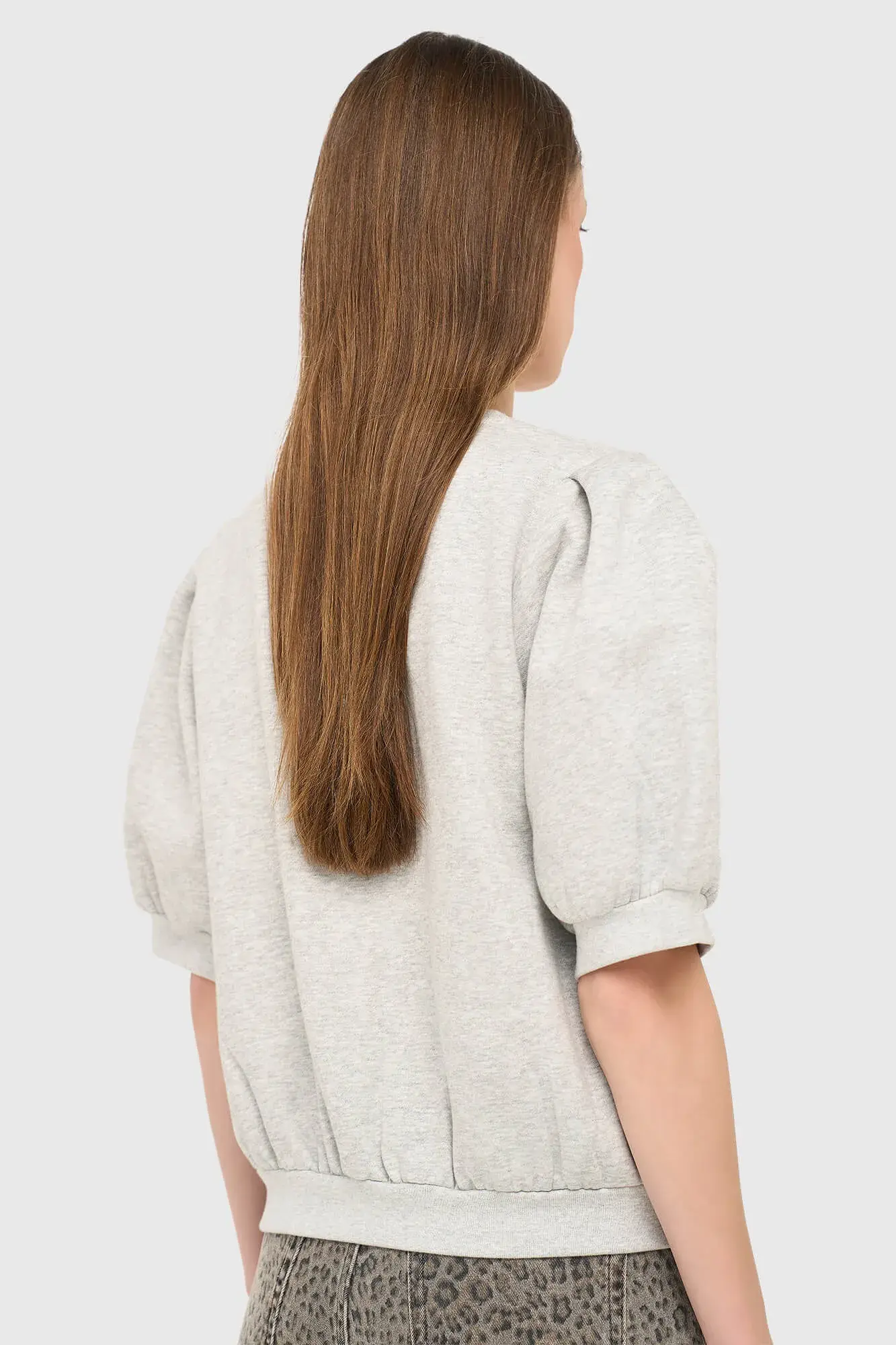 De grijze dames sweater pof mouw katoen COREY van JANICE is een moderne dames trui die luxe en comfort moeiteloos combineert. Gemaakt van 80% katoen en 20% polyester voelt deze sweater zacht aan op de huid en heeft het een relaxte fit die geschikt is voor dagelijks gebruik. De ronde hals en de korte pofmouw geven de sweater een subtiel vrouwelijk detail dat perfect past bij de tijdloze, rustige stijl waar JANICE om bekend staat. Dankzij de iets kortere lengte is de COREY ideaal om te dragen op een high waist broek, voor een flatterend silhouet dat elegant en toch casual blijft.