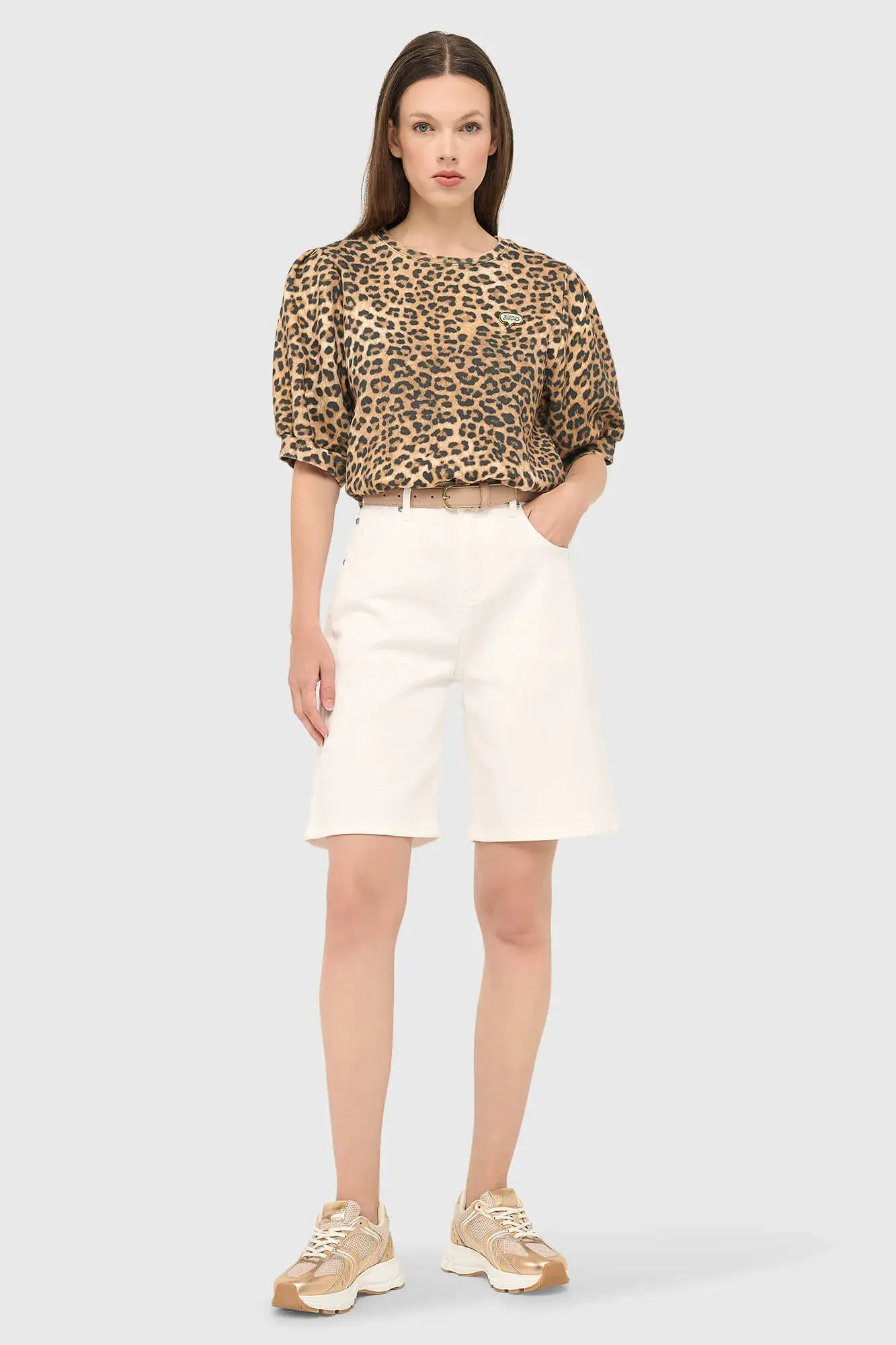 De panterprint dames sweater pof mouw katoen COREY van JANICE is een stijlvolle toevoeging aan de garderobe van de moderne vrouw die kiest voor kwaliteit en comfort. De dames trui is gemaakt van 80% katoen en 20% polyester, waardoor het product zacht aanvoelt en prettig draagt op zowel koelere als mildere dagen. De ronde hals en korte pofmouwen geven deze luxe dames trui een vrouwelijke uitstraling, terwijl de relaxte fit zorgt voor een comfortabele pasvorm. Omdat de COREY niet heel lang valt, komt het silhouet het mooist tot zijn recht in combinatie met een high waist broek.