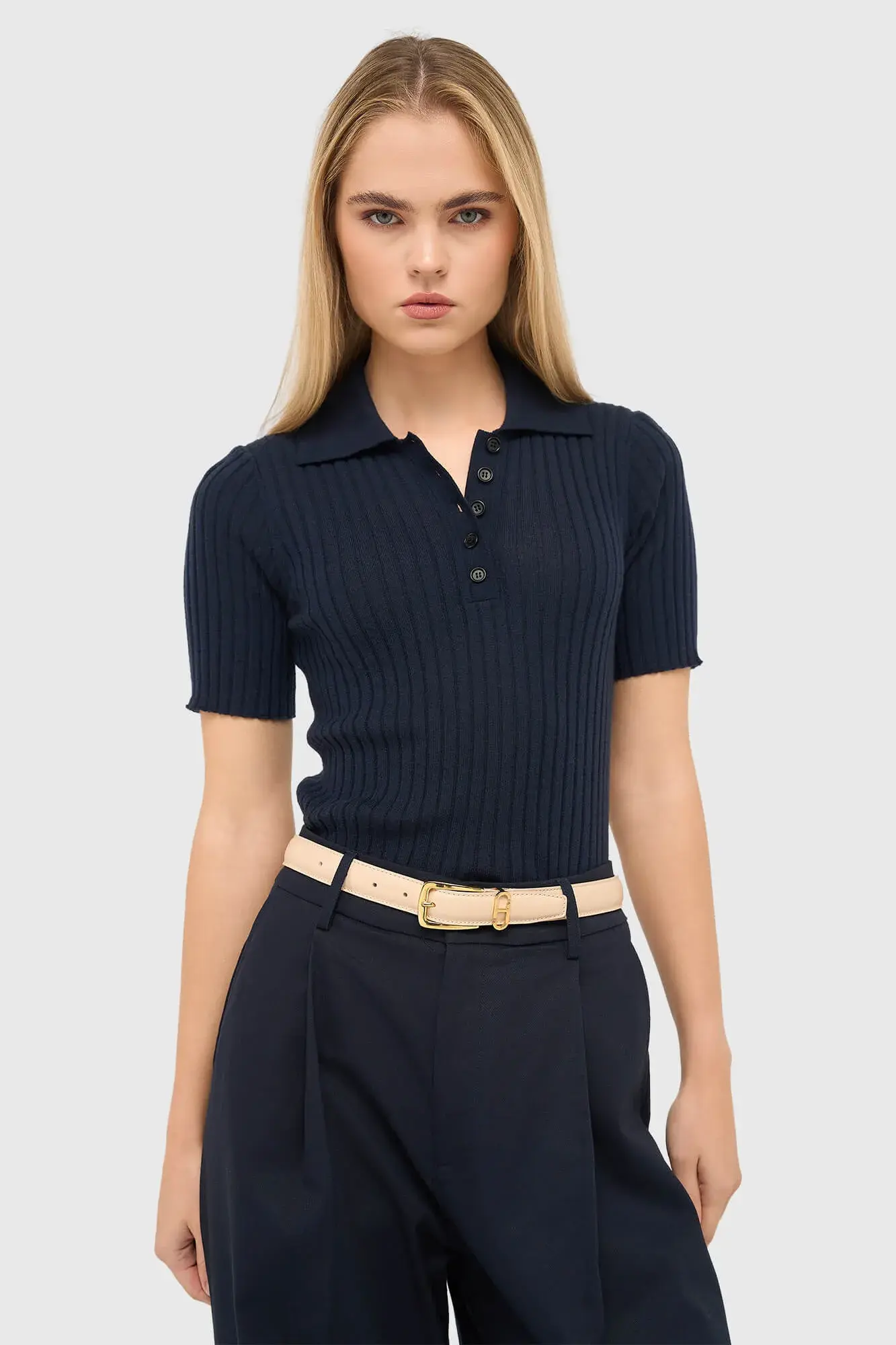 POLO TRUITJE GEBREID MERINO WOL KIAN NAVY BLAUW - JANICE