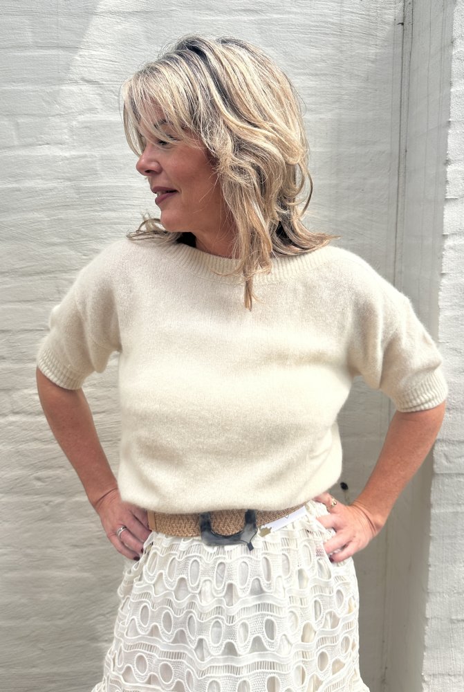 Deze Six Ames trui moi in de mooie creme kleur is ieder seizoen een van de bestsellers van Six ames. Dit snappen wij heel goed, want dit truitje is ontzettend zacht en wil je absoluut niet meer uit. Het is gemaakt van heerlijk zacht wol dat niet kriebelt. Perfect om met al je looks te combineren. Kan ook prima worden gedragen onder een blazer of jasje.