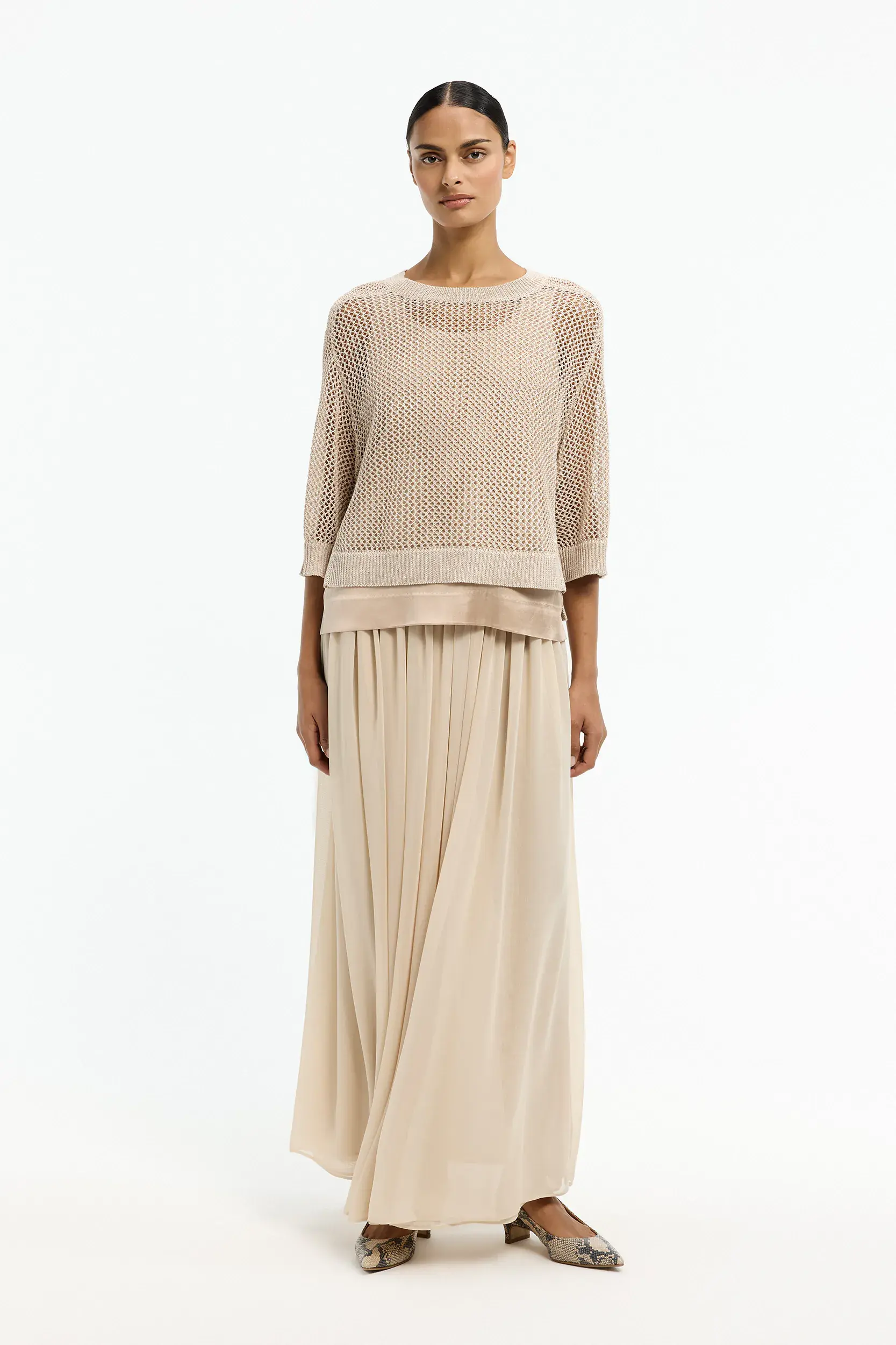 Voor SS26 presenteert Xandres Iconic een collectie voor gelegenheden die zich uitstrekken van dag naar avond. Zwarte raffia, glanzend champagne jacquard, een grafisch patroon – transparantie, textuur en gelaagdheid voelen uitgesproken aan, maar blijven draagbaar en verrassend veelzijdig. Ideaal voor wie een zomerse feestlook zoekt met karakter.