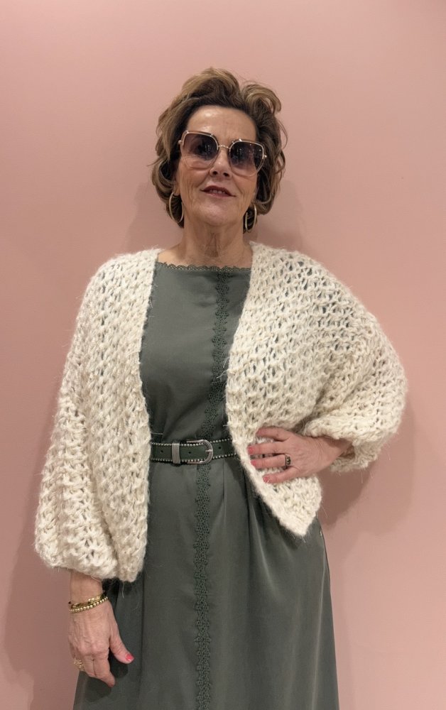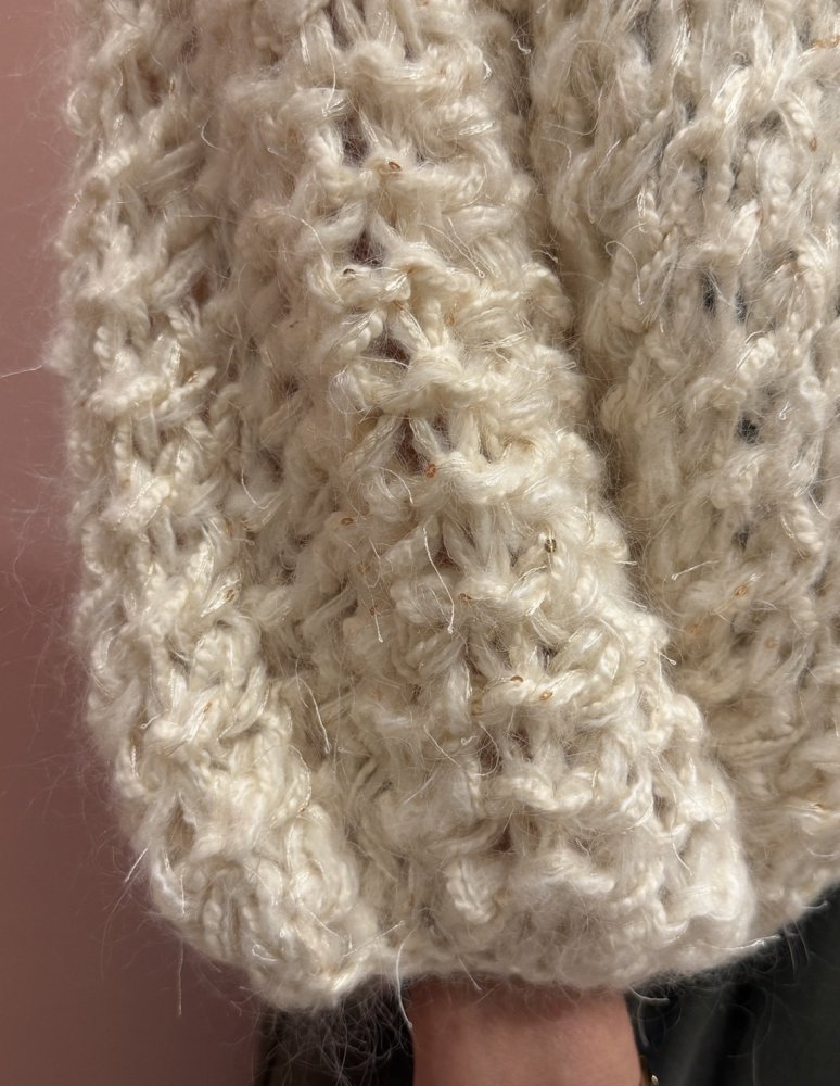 Handgebreid in een luxe mohairkwaliteit, vijf-draads gebreid voor een volle, rijke uitstraling.