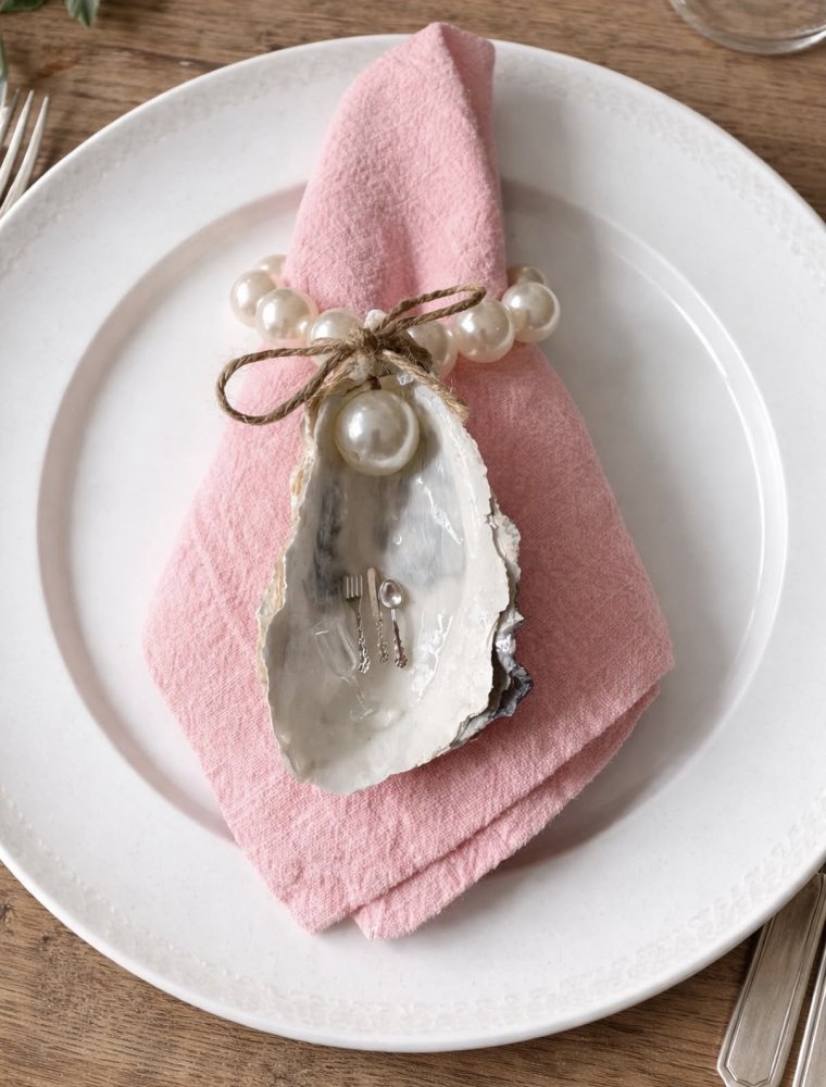 oestermood 6 Servetringen – Oesterschelp, Parels & Bestek Creme