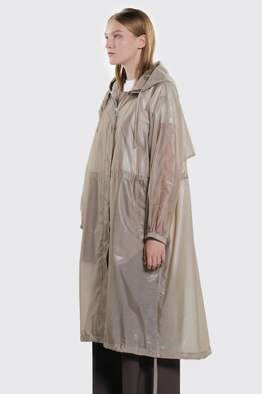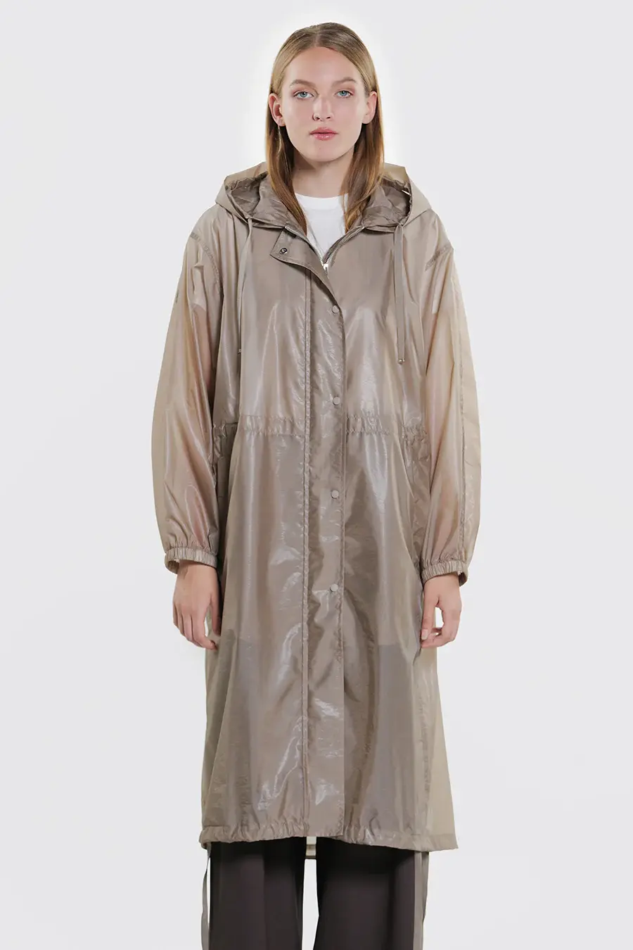 • Oversized lange parka in lichtgewicht en doorzichtige technische stof